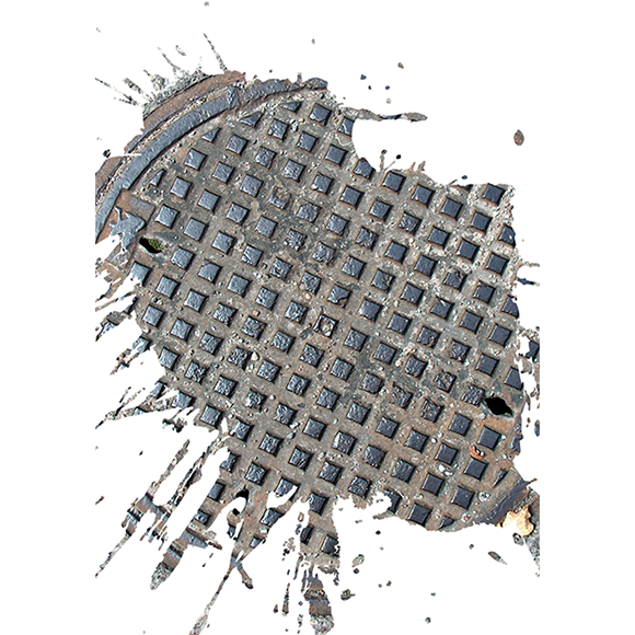 Daje przyjemność posiadania na ścianie swojego domu jakże charakterystycznego dla przestrzeni miejskiej elementu — włazu żeliwnego, z całą jego siermiężnością, zadziornością bez obawy, że będzie zbyt ciężki względem użytych haków.